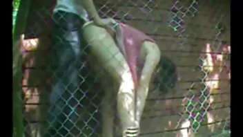 O tânără blondă cu un bărbat în ochelari așezat futai cu mature flocoase pe sârmă.